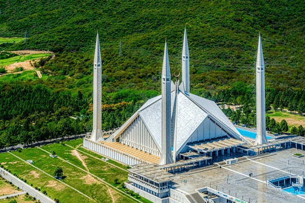 Faisal Mosque Islamabad has a completely unique architectural design that separates it from traditional domed mosques.